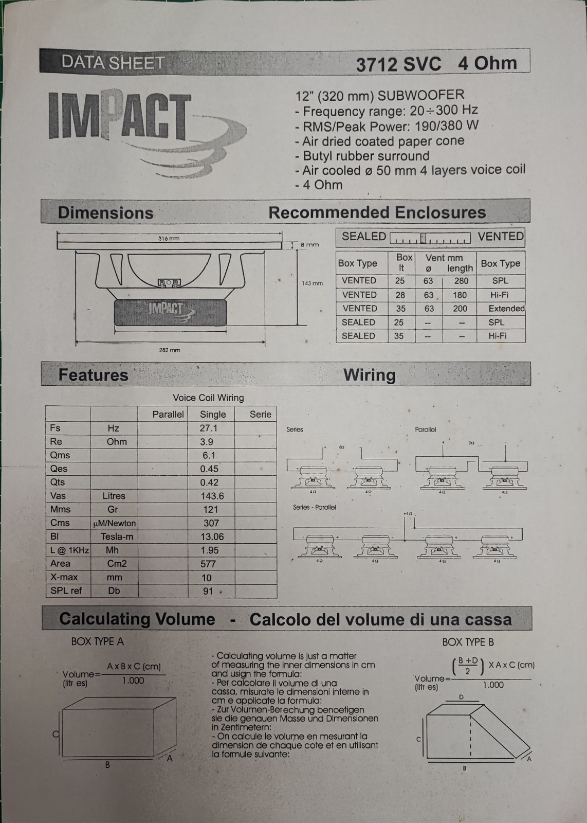 Impact 3712 svc 4ohm Subwoofer old school vintage rare car audio system