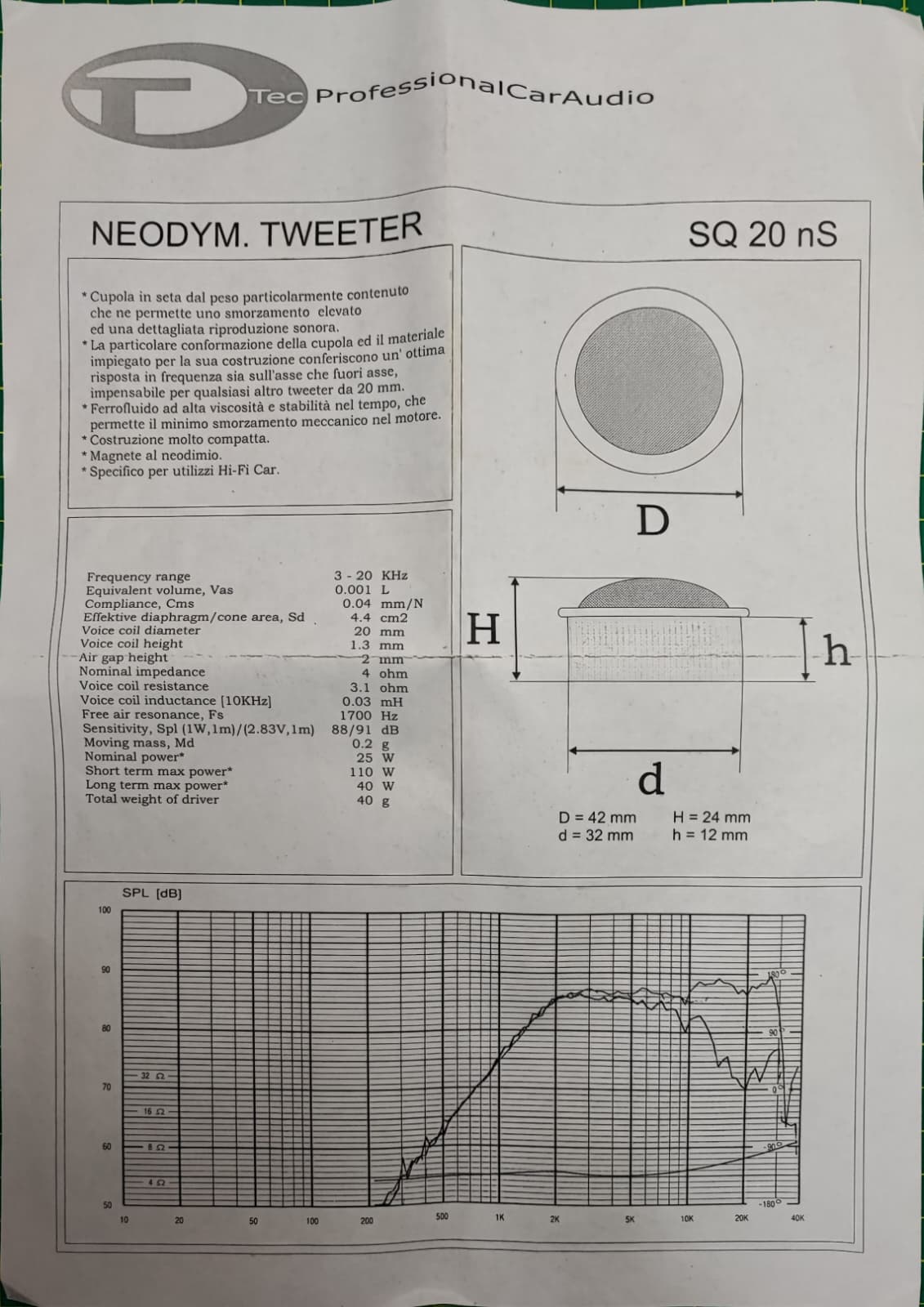 Rare Old School Tweeter PAIR Tec SQ 20 ns neodymium NOS NIB RETRO' HIFI CAR